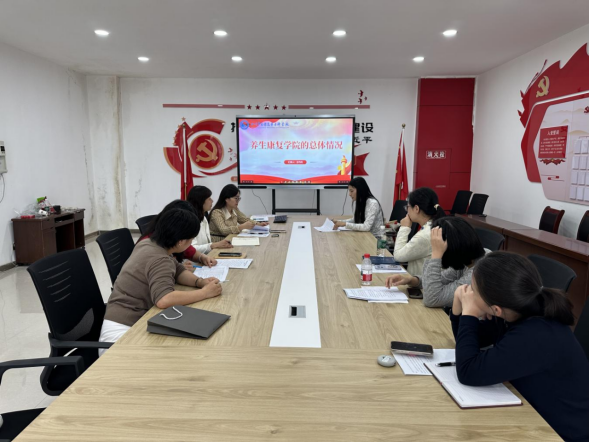 首先,副院长王巧利全面汇报养生康复学院的总体情况,从学院整体发展布局、资源配置、阶段性成果等方面,勾勒出学院发展的宏观图景。随后,各专业负责人依次聚焦专业建设与发展,逐一汇报工作进展,大家分别结合各自专业特色,详细阐述专业培养目标落实、课程体系建设、实践教学开展、行业对接情况等内容,深入分析专业发展中的优势与挑战,为后续专业优化提供方向。
