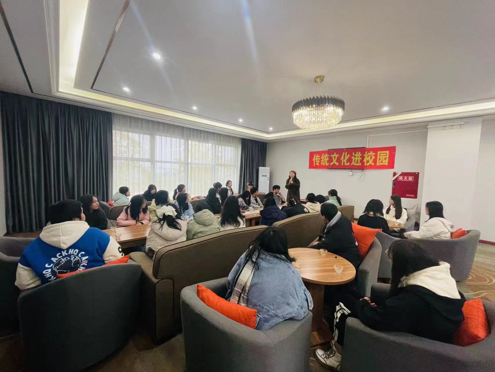 “坐酌泠泠水,看煎瑟瑟尘。无由持一碗,寄与爱茶人。”王利老师以“茶润人生,以茶习礼”为题向大家讲授茶艺文化,讲解茶叶的相关知识。其中包括茶叶分类、茶具、泡茶过程、基本礼仪等,重点学习了白茶、乌龙茶、花茶的泡制技巧和方法,品鉴了各种茶的滋味,让现场师生了解茶叶厚重历史和独特魅力。