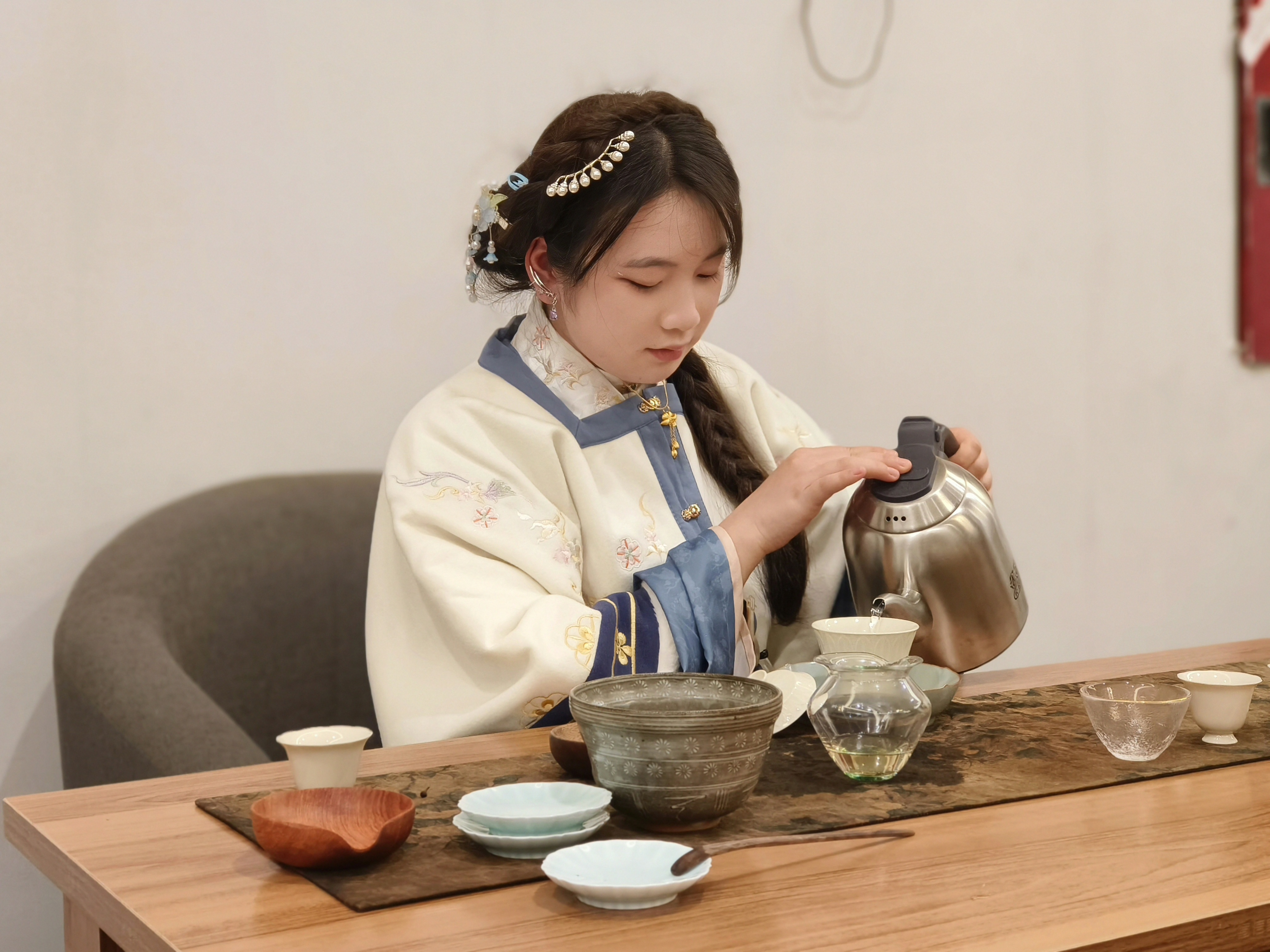 热水入杯,茶香四溢,水沸而心静,浅酌而慢品。同学们在繁重的学业中体会“采菊东篱下,悠然见南山”的静怡雅致和人生境界。“这一切太美妙了”、“放松、享受更能感受文化的厚重”......