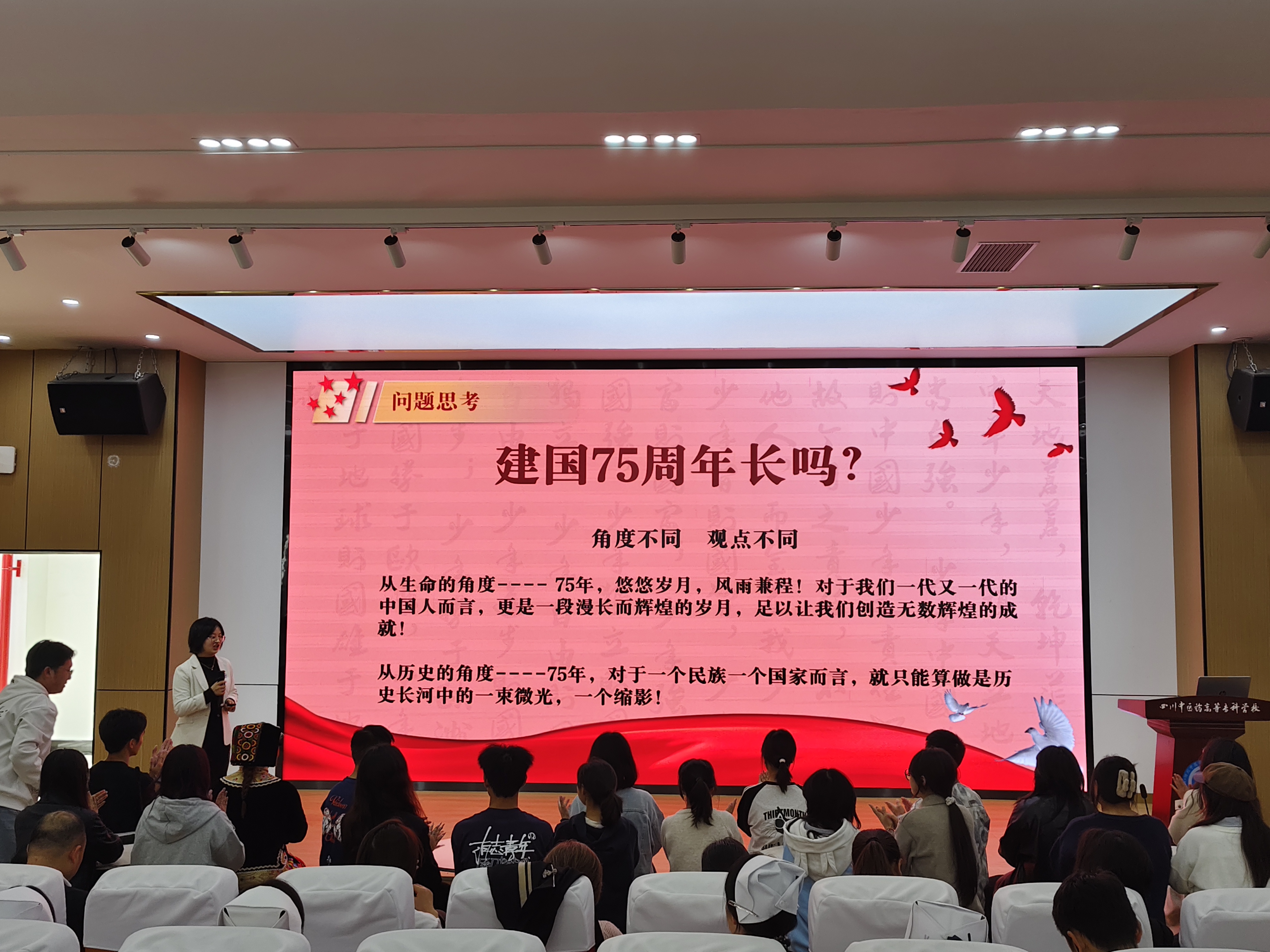 比赛中,蒲琴琴老师展现了出色的班级管理能力和创新的教育理念。她设计的主题班会以“共庆华诞,筑梦未来”为主题,通过一系列精心策划的互动游戏和讨论环节,让学生更好地了解国庆节的意义,增强了学生们的爱国意识和爱国热情。通过回顾新中国成立以来的伟大成就,引导他们思考个人梦想与国家发展的关系,引导学生树立正确的择业观,进一步成功激发了他们为国家贡献力量的决心。