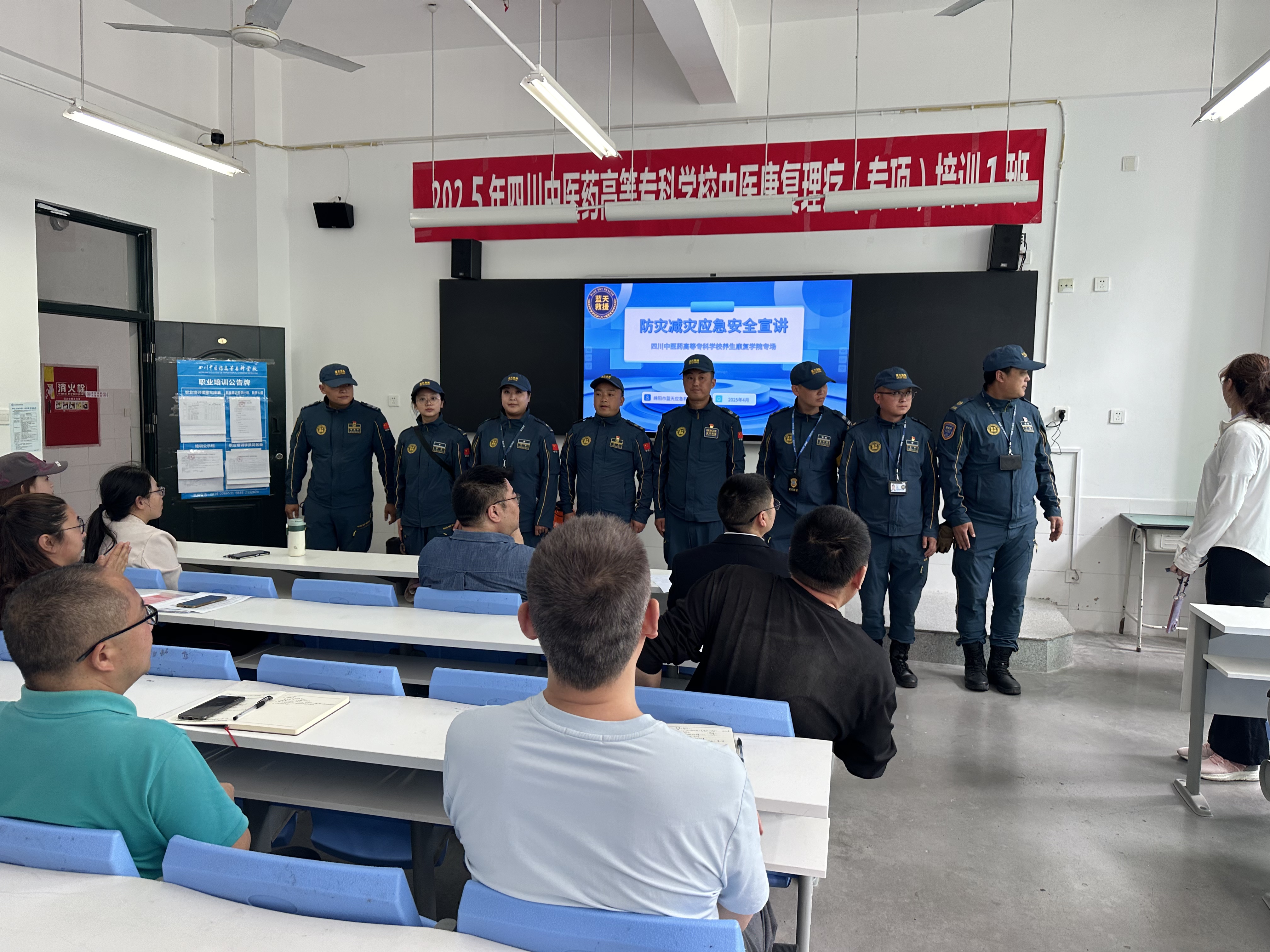 为提高安全防范能力,增强应急避险意识,4月24日,养康学院邀请绵阳市蓝天救援队到学院“一站式”学生社区开展防灾减灾安全教育活动。学院全体教职工及学生代表参与此次活动。