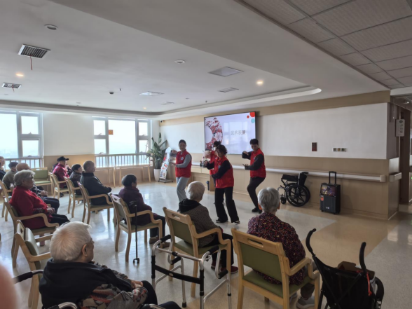 活动在同学们带来的精彩武术表演中拉开帷幕。同学们气定神闲,一招一式如行云流水,刚柔并济,充分展现了中华传统武术的独特魅力与强身健体的养生智慧。太极拳的舒缓沉稳、五禽戏的生动仿生,引得在场老人们阵阵掌声,有的甚至情不自禁地在座位上跟着比划起来。这场表演不仅是一场视觉盛宴,更是一次生动的健康养生课堂。