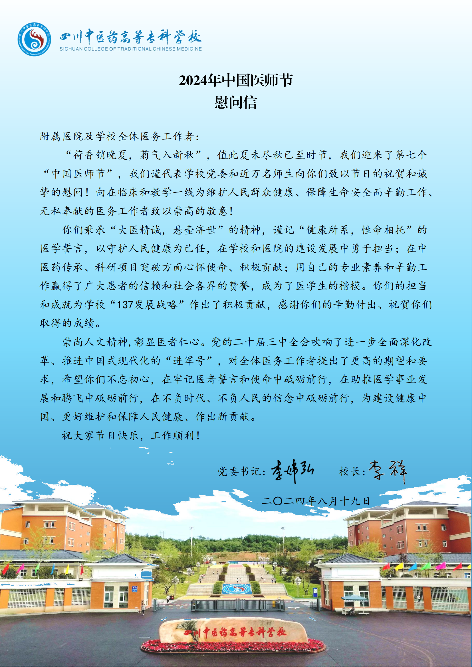 2024年中国医师节慰问信