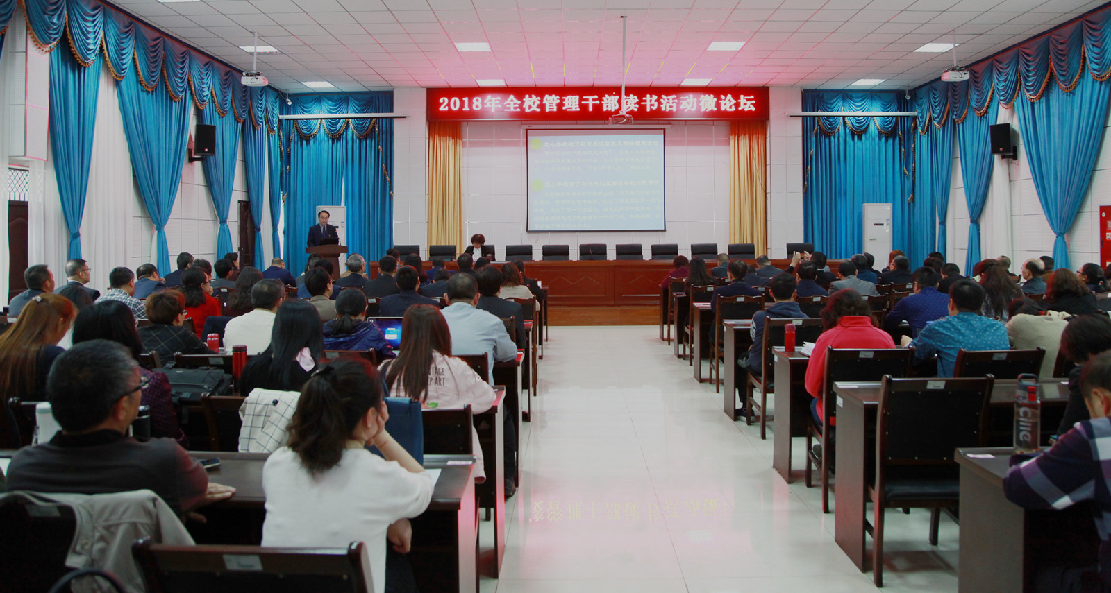 全校管理干部读书活动微论坛是学校学习型团队建设的一个缩影,为不断提升干部队伍和教职工队伍的本领和水平,促进教职工之间相互学习和共同提高,打造一支爱岗敬业、甘于奉献、敢于担当、忠诚党的教育事业的团队,营造学、比、赶、帮、超的浓厚氛围,今年1月校党委印发了《关于建设学习型团队的实施意见》《关于建设服务型团队的实施意见》,将之作为学懂弄通做实党的十九大精神的重要举措之一;目前各党总支和各部门、学院都结合2018年的工作计划,制定了落实“两个团队”建设的具体措施,下一步学校将加大督查力度,确保“两个团队”建设落地生根,为促进学校又好又快发展提供强有力的思想保证、智力支持和能力保障。