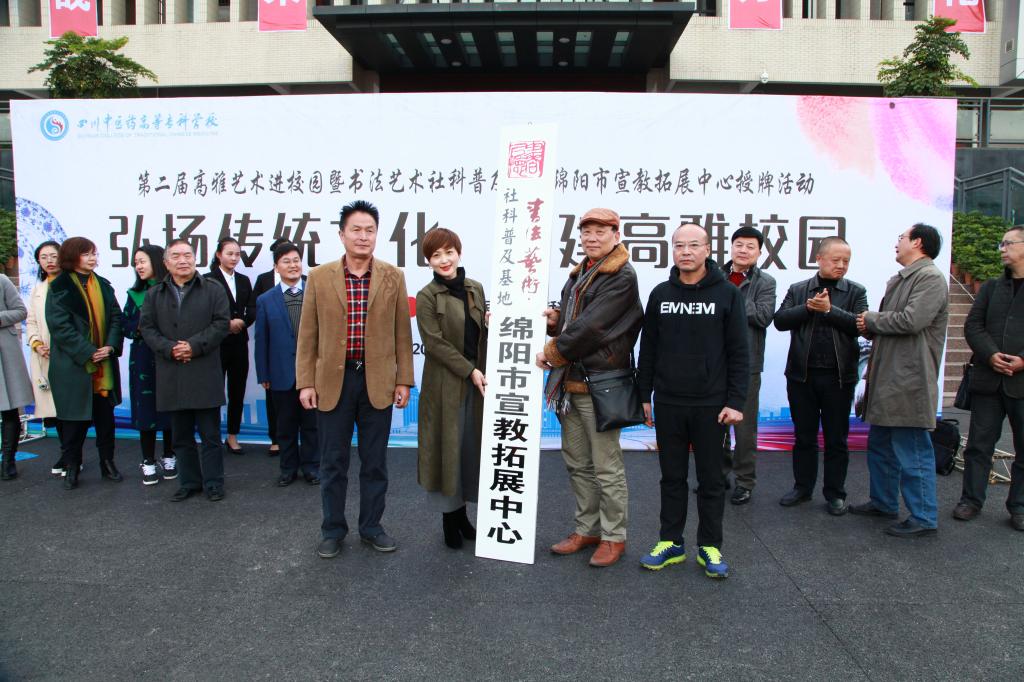 11月23日,我校举行了第二届高雅艺术进校园暨“书法艺术社科普及基地绵阳宣教拓展中心”(以下简称拓展中心)授牌活动;成都文理学院副院长谢瑶函,拓展中心专家组成员一行13人及我校副校长梁晓峰,全体中层干部、学生代表书法社成员参加活动;谢瑶函副院长、成都文理学院教授张旭农向我校现场授牌。