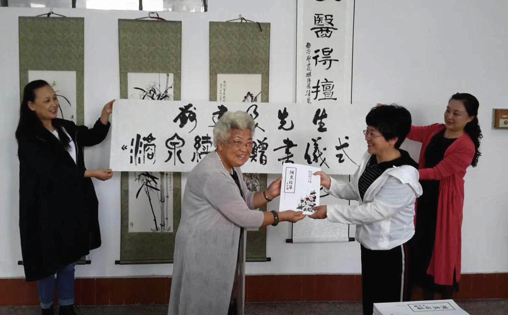 协会副会长、80高龄的刘建君老师向会员们赠送了她的新作《滴泉续集》,饱含深情地表达了她对学校和同事的感恩之情。