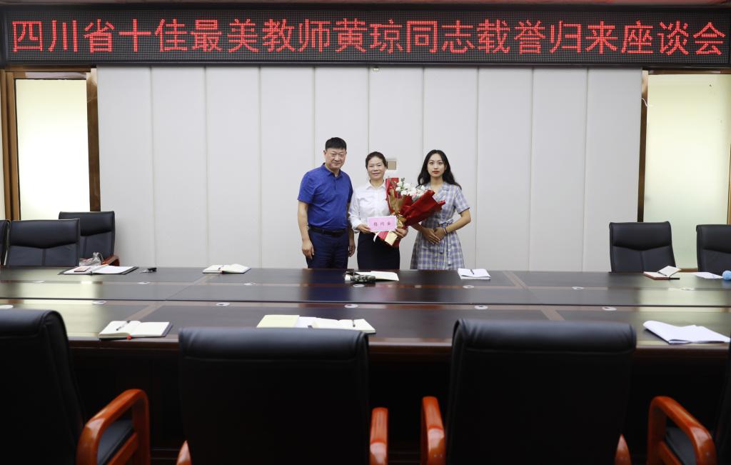 2021年9月10日上午,我校举行了“四川最美教师”黄琼同志载誉归来座谈会,校党委副书记汪涌泉,护理学院院长黄琼,护理学院党总支书记侯勇以及各学院负责人、护理学院教师、学生代表等参加座谈。